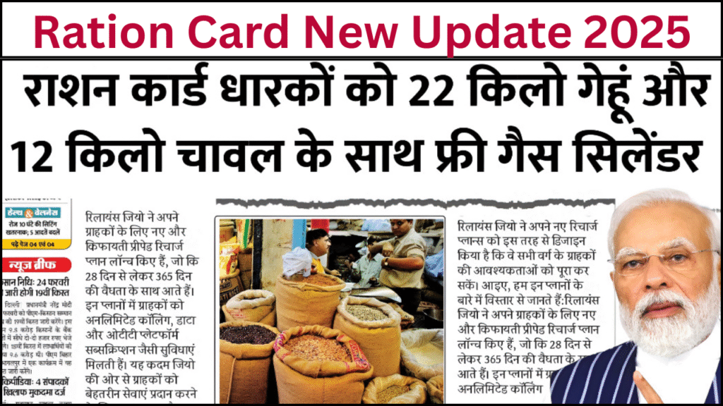 WhatsApp Group Join Now Telegram Group Join Now Ration Card News: अब कार्ड धारकों को मिलेगा 22 किलो गेहूं, 12 किलो चावल और फ्री गैस सिलेंडर – जानें पूरी जानकारी!भारत सरकार ने राशन कार्ड धारकों के लिए एक शानदार योजना शुरू की है। अब हर महीने परिवारों को 22 किलो गेहूं और 12 किलो चावल … Continue reading Ration Card News: अब कार्ड धारकों को मिलेगा 22 किलो गेहूं, 12 किलो चावल और फ्री गैस सिलेंडर – जानें पूरी जानकारी!